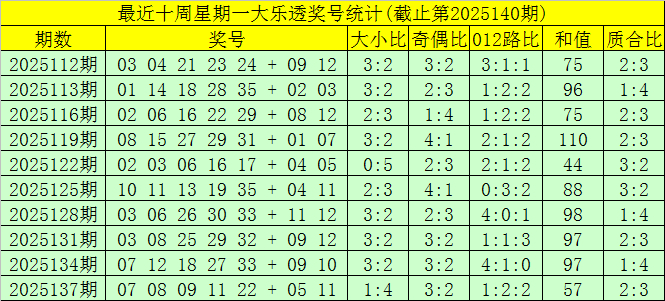 第一区(01-07):最近10周星期一开出了13个奖号,其中号码03出现4次;06出现3次;02、07出现2次;01、04出现1次;号码05莫得出现; 其中,号码质合比为9:4,奇偶比为7:6,奇偶号码走势握平,012路比为7:4:2,0路号码走势较热; 本周星期一第一区号码大边界防卫:01、02、03、05、07,精选号码:02。 第二区(08-14):最近10周星期一开出了10个奖号,其中号码08出现3次;11出现2次;09、10、12、13、14出现1次; 其中,号码012路比为2:2:6,2路号码相对较热,质合比为3:7,奇偶比为4:6,偶数号码相对较热; 本周星期一第二区号码大边界防卫:09、13、14。 第三区(15-21):最近10周星期一开出了8个奖号,其中号码16、18出现2次;15、17、19、21出现1次;号码20莫得出现; 其中,号码012路比为4:3:1,2路号码出现较少,质合比为2:6,奇偶比为4:4,奇偶号码走势握平; 本周星期一第三区号码大边界防卫:17、19,精选号码:17。 第四区(22-28):最近10周星期一开出了9个奖号,其中号码22、27出现2次;23、24、25、26、28出现1次; 其中,号码奇偶比为4:5,奇偶号码走势握平,012路比为3:4:2,1路号码走势活跃,质合比为1:8; 本周星期一第四区号码大边界防卫:27、28,精选号码:28。 第五区(29-35):最近10周星期一开出了10个奖号,其中号码29出现3次;33、35出现2次;30、31、32出现1次;号码34莫得出现; 其中,号码奇偶比为8:2,奇数号码走势较热,012路比为3:1:6,2路号码相对较热,质合比为4:6; 本周星期一第五区号码大边界防卫:30、31、33,精选号码:31、33。