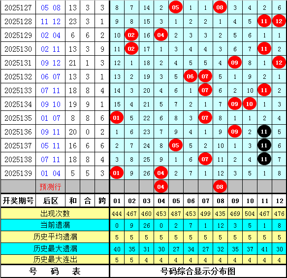 后阔别析:最近10周星期逐个大一小开出3次,全打开出5次,全小开出2次;全偶开出1次,一奇一偶开出7次,全奇开出2次,本期后区提神两码04+08。