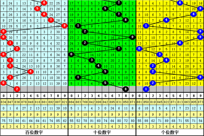 本期百位禁绝号码:01279,主推一码2。